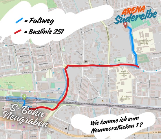 Wir konnten für diese Maßnahme die „Arena Süderelbe“ gewinnen. Diese befindet sich in Neugraben und ist fußläufig zur S3 gelegen. Nun musst du nur noch packen:
